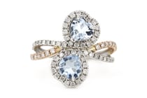 14K ROSE GOLD, AQUAMARINE AND DIAMOND, DOUBLE...