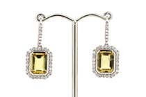 14K WHITE GOLD, GOLDEN BERYL AND DIAMOND, ANTIQUE...
