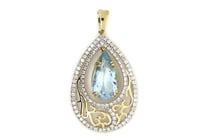 14K YELLOW/WHITE GOLD, AQUAMARINE AND DIAMOND,...