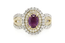 14K YELLOW/WHITE GOLD, RUBY AND DIAMOND, HALO...