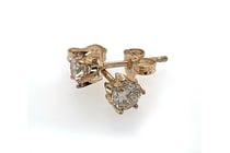 14K ROSE GOLD, RUBY AND DIAMOND, DOUBLE HALO STUD...