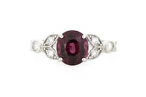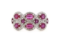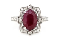14K WHITE GOLD, RUBY AND DIAMOND, RING. The...