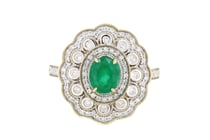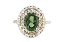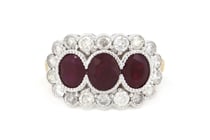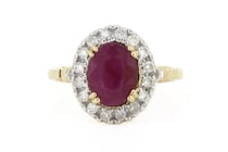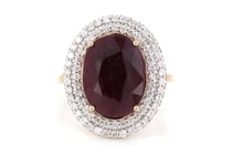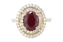 14K YELLOW GOLD, RUBY AND DIAMOND, DOUBLE HALO...