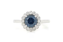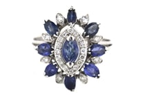 18K WHITE GOLD, SAPPHIRE AND DIAMOND, FLORAL...