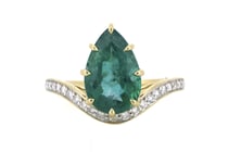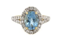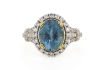 14K YELLOW GOLD, AQUAMARINE AND DIAMOND, TRILOGY...