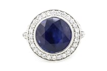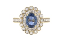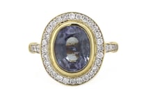 14K YELLOW GOLD, SAPPHIRE AND DIAMOND, HALO RING....