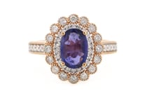 14K ROSE GOLD, TANZANITE AND DIAMOND, DOUBLE HALO...