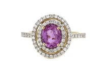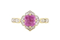 14K YELLOW GOLD, PINK SAPPHIRE AND DIAMOND, HALO...