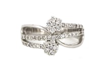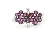 14K WHITE GOLD, RUBY AND DIAMOND, FLORAL RING....
