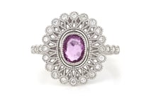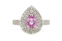14K WHITE GOLD, PINK SAPPHIRE AND DIAMOND,...
