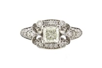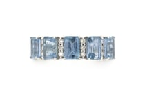 14K WHITE GOLD, AQUAMARINE AND DIAMOND, DRESS...