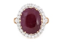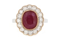 14K ROSE/WHITE GOLD, RUBY AND DIAMOND, HALO...