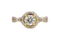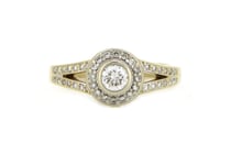 14K YELLOW GOLD, RUBY AND DIAMOND, HALO SPLIT...