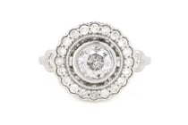 14K WHITE/ROSE GOLD, RUBY AND DIAMOND, HALO RING....