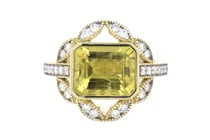 14K YELLOW GOLD, HELIODOR AND DIAMOND, DECORATIVE...