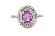 14K WHITE GOLD, PINK SAPPHIRE AND DIAMOND, FLORAL...