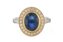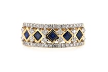 14K YELLOW GOLD, BLUE SAPPHIRE AND DIAMOND,...