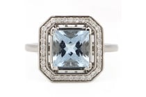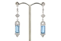 14K WHITE GOLD, AQUAMARINE AND DIAMOND, DROP...