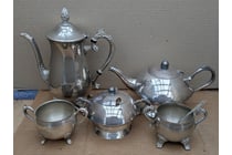 SET OF SILVER PLATED COFFEE POT, TEAPOT, SUGAR...