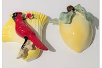 TWO VINTAGE WALL VASES Bird & Lemon, Tallest Is...