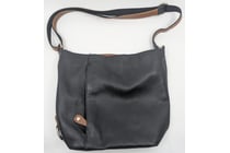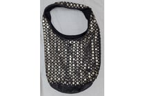 BLACK LEATHER STYLE SHOULDER BAG WITH METAL...