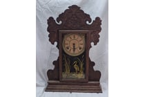 CARVED WALNUT BRACKET CLOCK WITH HERON...