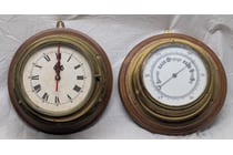 WALL MOUNTED BRASS CLOCK AND BAROMETER Timber...