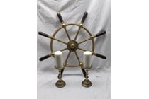 SHIP WHEEL STYLE DECORATION AND TWO BRASS...