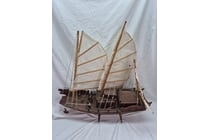 CHINESE JUNK MODEL WITH LINEN SAILS AND WOODEN...