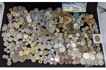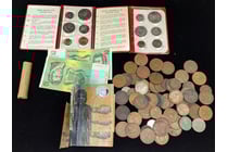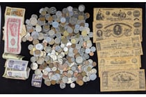 COLLECTION OF WORLD BANKNOTES, COINS AND STAMPS...