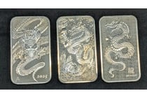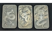 THREE SILVER DRAGON COINS Bars Include 1 Oz 999...