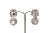 14K WHITE GOLD AND DIAMOND, DOUBLE HALO DROP...