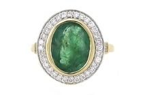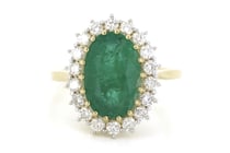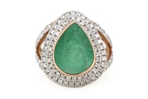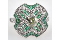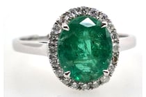 14K WHITE GOLD, EMERALD AND DIAMOND, DOUBLE HALO...