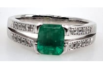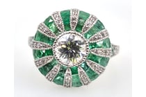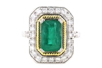 PLATINUM EMERALD AND DIAMOND RING Featuring 68...