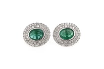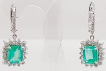 18K WHITE GOLD EMERALD AND DIAMOND EARRINGS...