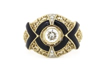 14K YELLOW GOLD, BLACK ONYX AND DIAMOND, DRESS...