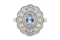14K ROSE/WHITE GOLD, AQUAMARINE AND DIAMOND,...