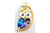 18K YELLOW GOLD OWL BROOCH Featuring 14 Pave...