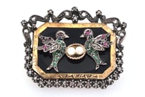 14K YELLOW GOLD ENAMEL BROOCH -...