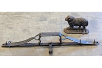 CAST IRON ANIMAL TRAP AND IRON SHEEP...