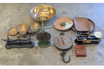 COLLECTION OF ANTIQUE STYLE SCALES AND WEIGHT...