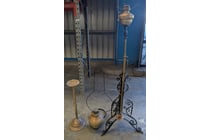 TWO KEROSENE LAMPS, BRASS STYLE CANDLESTICK...