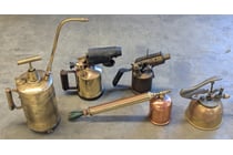 THREE BRASS STYLE SPRAYERS AND TWO BRASS...