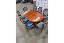 SOLID TIMBER DINING TABLE WITH 8 CHAIRS. Item...
