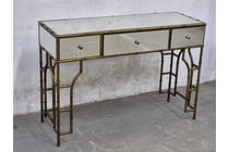 Hall Table, 3 Drawer, Mirrored, Metal Gold Finish...