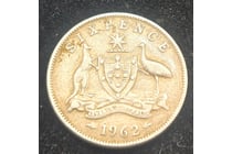 1962 AUSTRALIAN SIX PENCE SILVER COIN Total...