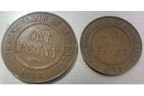 1933 AUSTRALIA KGV PRE DECIMAL ONE PENNY & HALF...