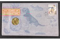 100 YEARS OF QUARANTINE COIN AND STAMP COVER,...