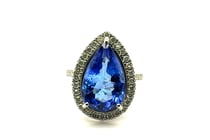 PLATINUM PEAR CUT TANZANITE AND DIAMOND RING T =...
