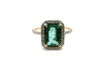14CT YELLOW GOLD EMERALD CUT EMERALD AND DIAMOND...